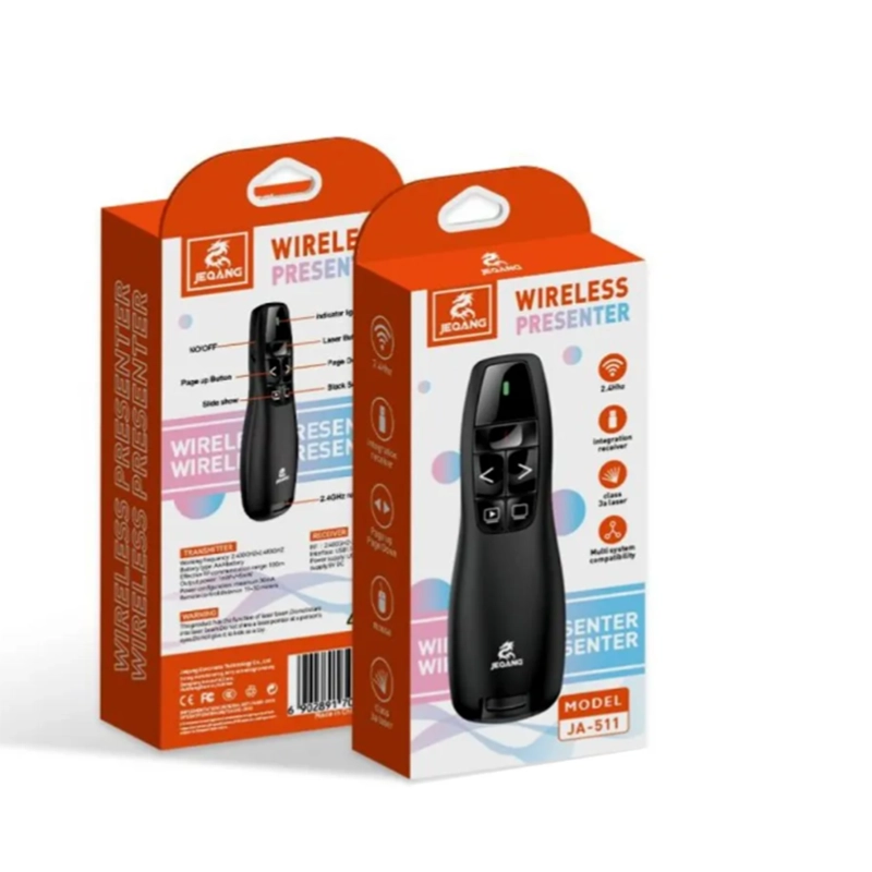دارای دکمه Black Screen دارای دکمه Full Screen دارای نشانگر لیزر قرمز رنگ دارای روکش ضد تعریق نحوهی اتصال دانگل USB Plug and Play نوع اتصال WIFI 2.4GHz |