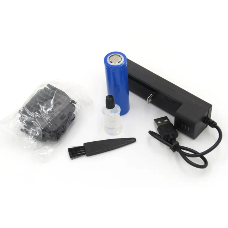 اقلام همراه | شارژر باطری، روغن، برس و دفترچه راهنما |