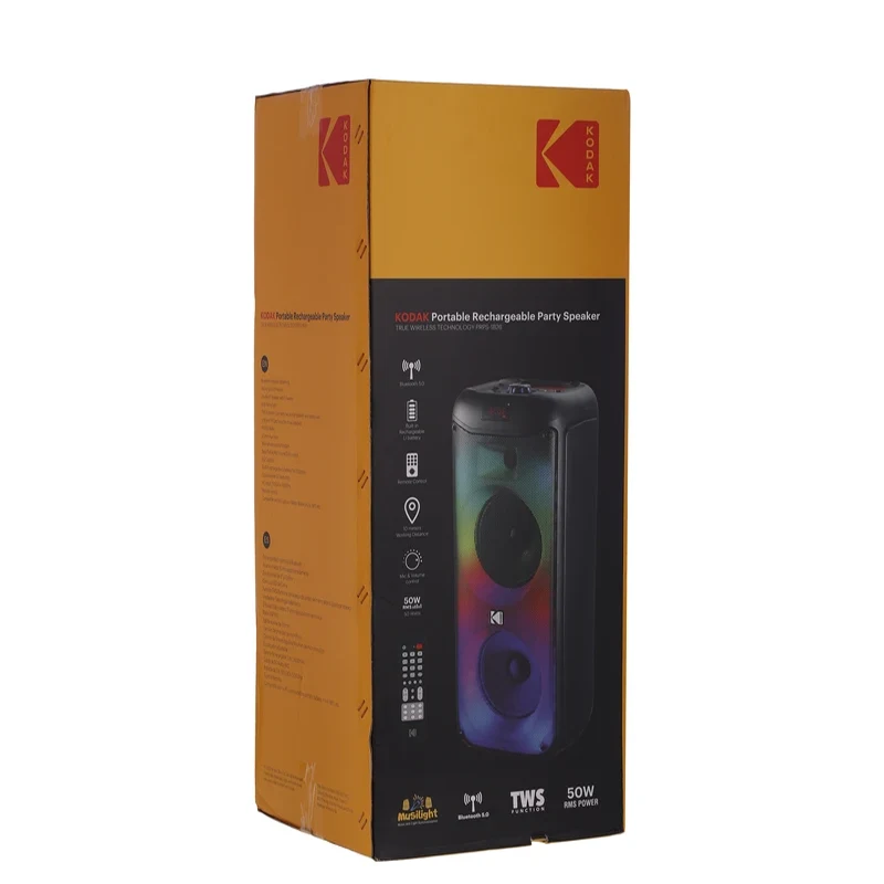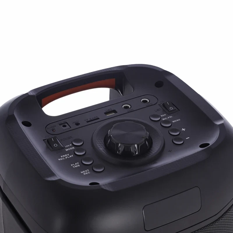نمایشگر LED دارای دسته برای حمل آسان قابلیت TWS خروجی هوا در پنل پشت ورودیهای AUX، USB، کارت حافظه TF برد تا 10 متر |